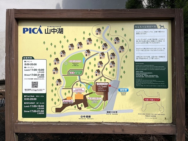 ほうとうを食べたら、今回の宿泊施設のある山中湖へ移動です。今回のグランピング施設は、PICA山中湖です。