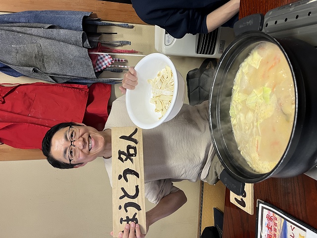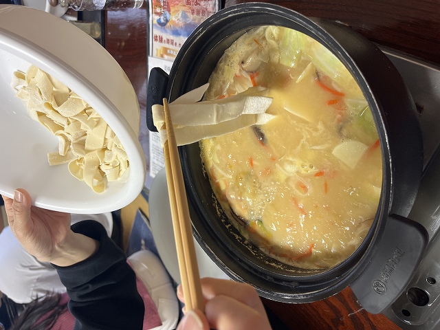 お店の方が用意してくれている鍋が温まったら、麺を入れるだけ。SNS用なのか、看板がありました。