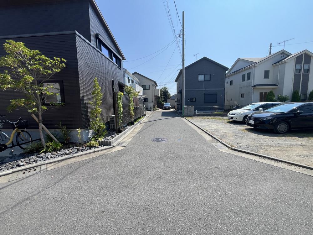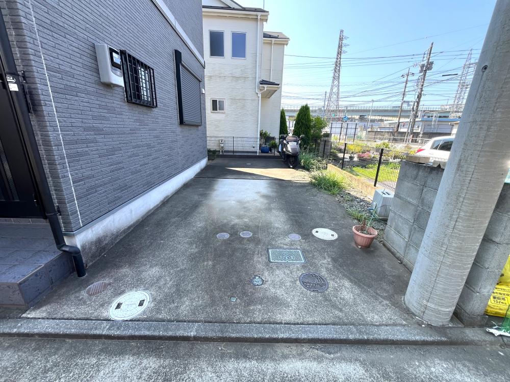 敷地内にはカースペースも確保。前面道路は比較的車通りも少なく、お車の出し入れもしやすいです。 (2025年9月撮影)