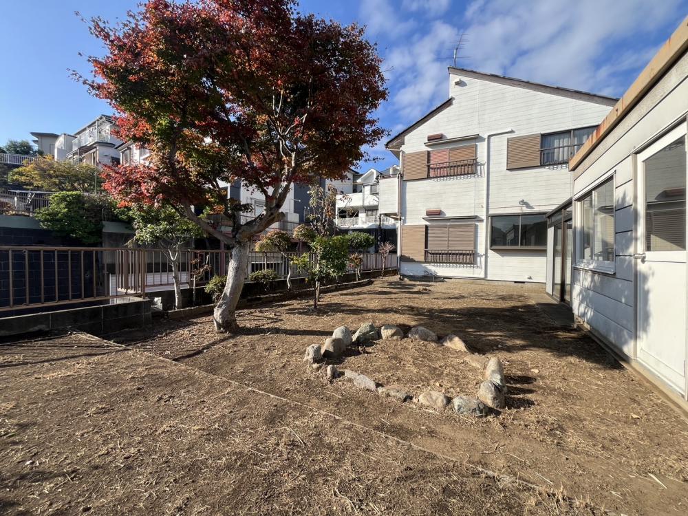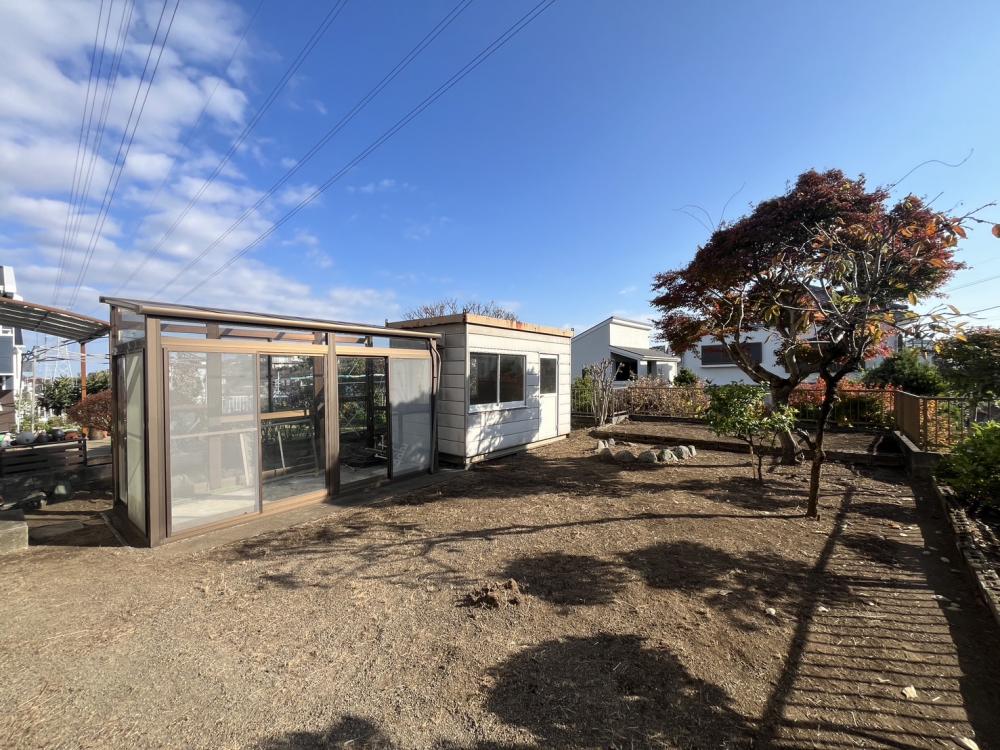 現在古家と広いお庭がございます。周辺には高い建物が少なく開放的で、明るく快適な空間です。(2025年11月撮影)