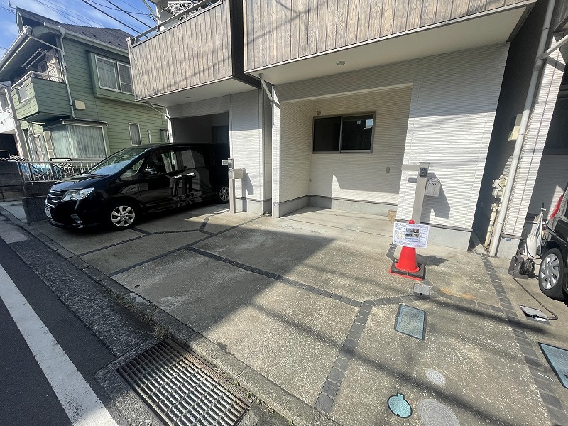 ゆとりのあるカースペース付きが嬉しいですね。敷地内に自転車を置くこともできます。 (2026年2月撮影)
