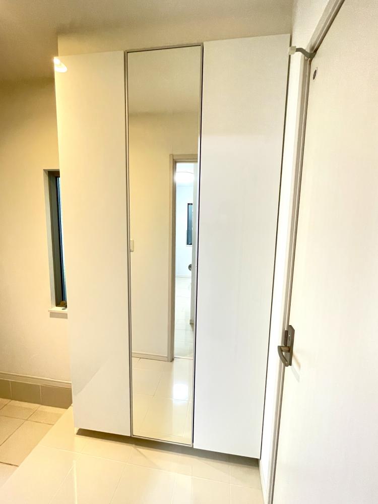 玄関には姿見鏡もあり、お出かけ前に身だしなみチェックもできます。