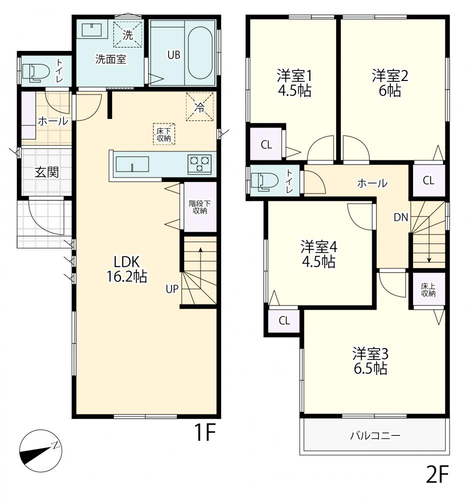 間取りは4LDK。全居室収納付きで室内スッキリ片付きます。