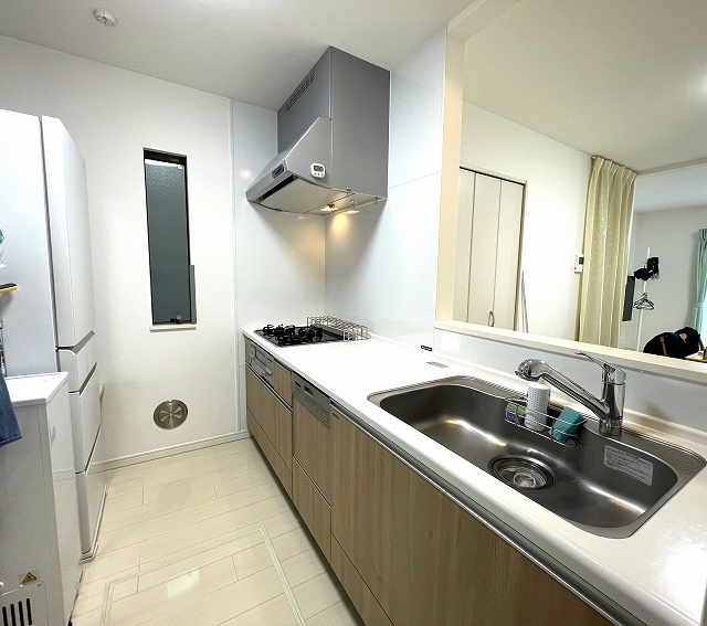 リビングが見渡せる対面式システムキッチン。食洗機やグリルなど機能も充実。