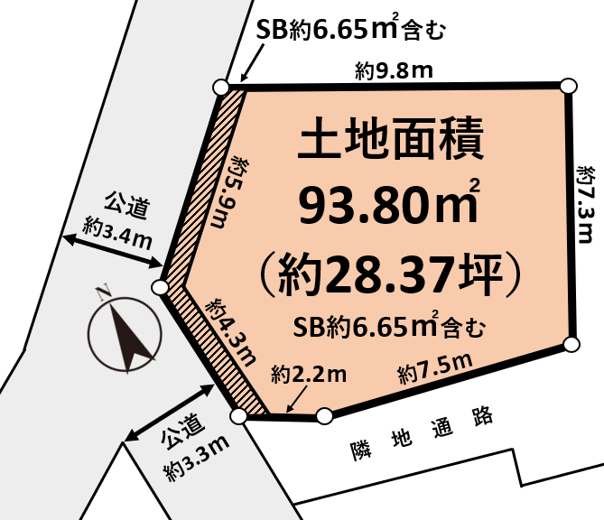 南西側公道約3.3mに約4.3m接する。- 現況/引渡