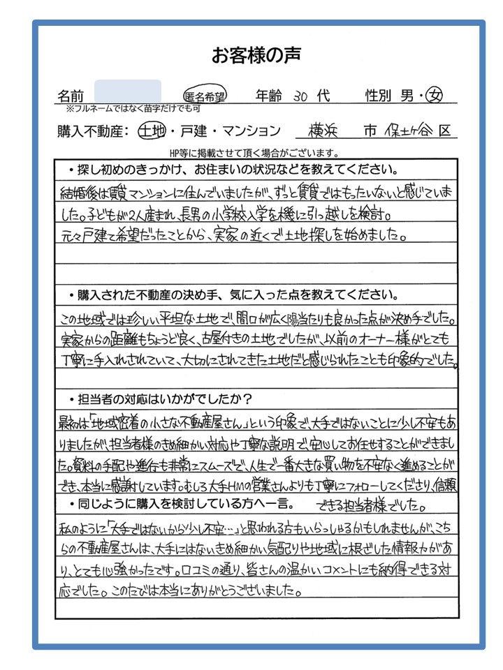 種別:土地購入場所:横浜市保土ケ谷区ご依頼者様:匿名希望様